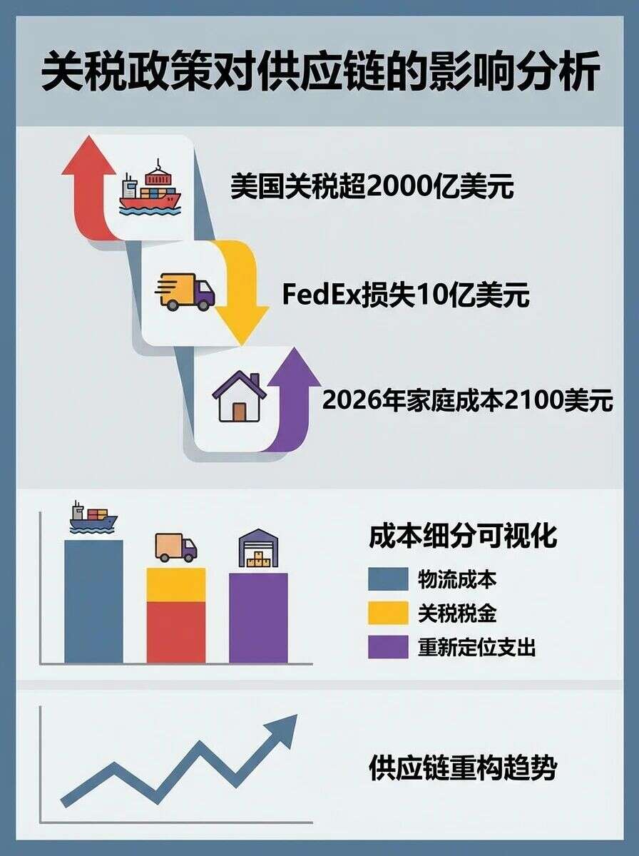 关税政策重构全球供应链成本结构,物流巨头已开始战略调整。企业需重新评估供应链布局,考虑多元化物流方案和关税成本转嫁策略。