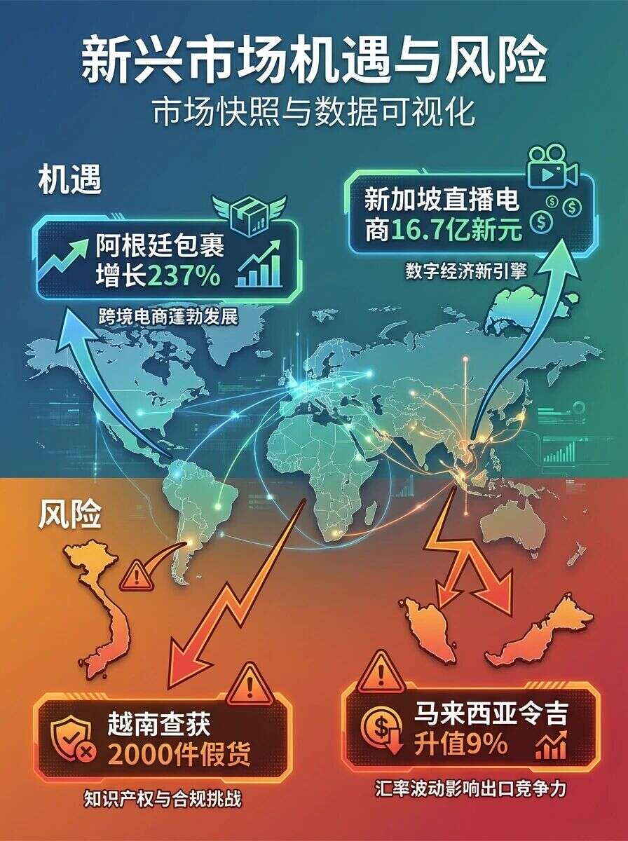 新兴市场呈现政策红利与监管风险并存的特征。企业需平衡市场拓展与合规投入,关注汇率波动对利润的影响。