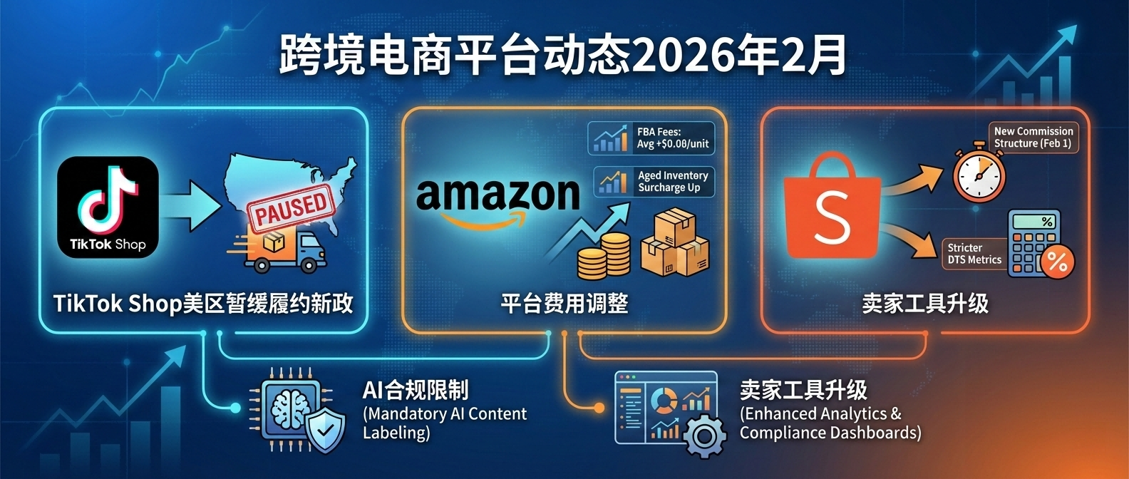 综合来看,2026年第一季度跨境电商平台呈现"功能优化、费用调整、合规收紧、政策灵活"的多维动态。TikTok Shop在功能创新与政策执行间寻求平衡,亚马逊强化技术合规边界,Shopee深耕卖家工具生态。建议卖家:1)及时完成平台资质认证与协议审查;2)重新评估各市场费用结构对利润率的影响;3)关注物流政策变化,保持运营弹性;4)善用平台新功能提升运营效率。行业竞争正从单纯规模扩张转向精细化运营与合规能力建设。