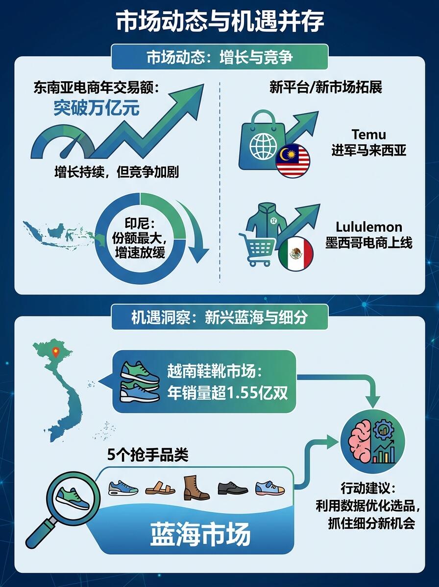 简评:市场整体向好,但需精耕细作。印尼增速放缓提示需开拓新市场,越南鞋靴案例说明深度选品的重要性。结合本地需求,才能抓住增长红利。🏆