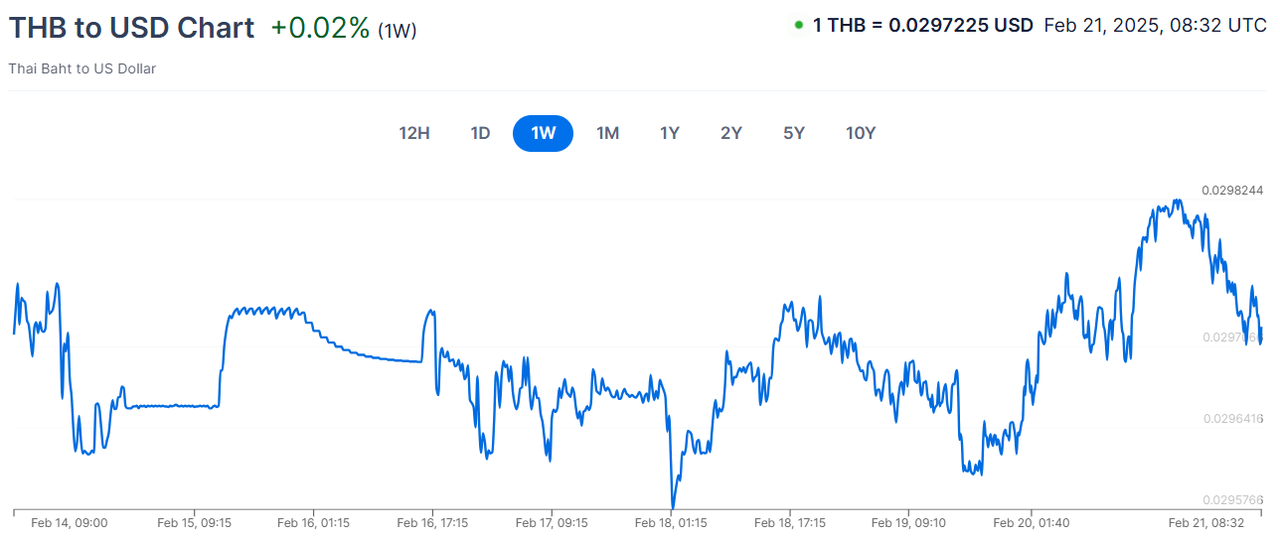 THBUSD:上周泰铢呈震荡下行趋势。近期美国关税政策推高了美元避险需求,加剧泰铢贬值压力。