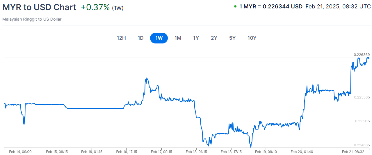 MYRUSD:林吉特兑美元当周整体呈区间震荡态势,受美国关税政策升级及美联储推迟降息预期影响,马来西亚央行多次表态将干预市场以遏制过度波动,但关税措施和贸易不确定性加剧了汇率波动,且事态发展多变,其影响仍存在高度不确定性。