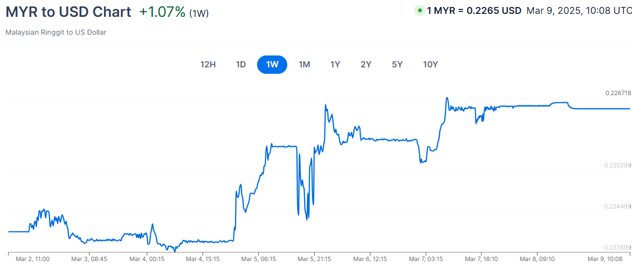 MYRUSD:林吉特在上周前半段贬值,但美国公布的经济数据出现波动,使得美元指数在后期走弱,支持了林吉特的回升,林吉特较一周前上涨约1.07%。