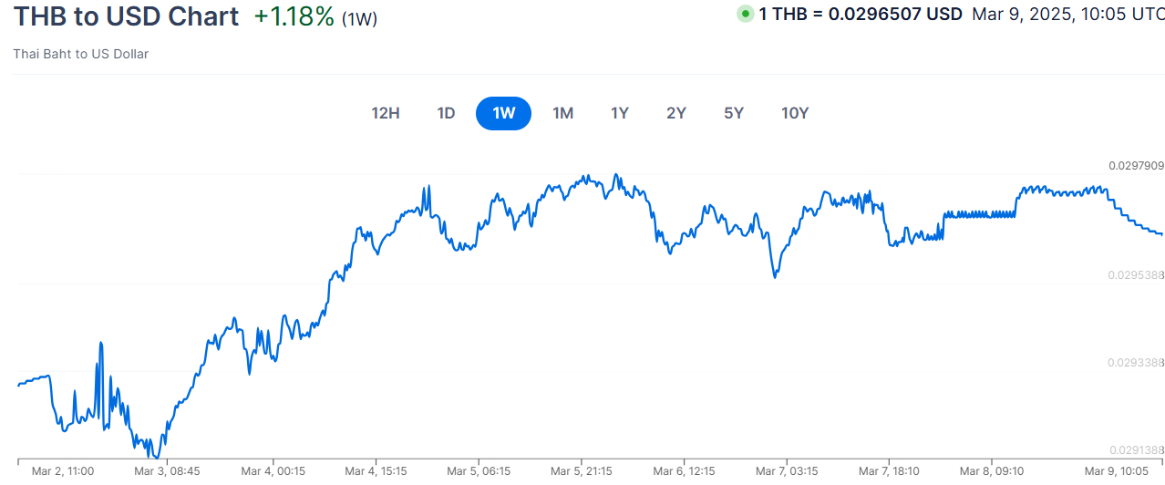 THBUSD:上周泰铢兑美金汇率整体呈现小幅波动的趋势,得益于美元后半周走弱行情,经历了先跌后升的走势。由于泰国通胀压力相对温和,市场普遍预期泰国央行短期内不会调整利率。