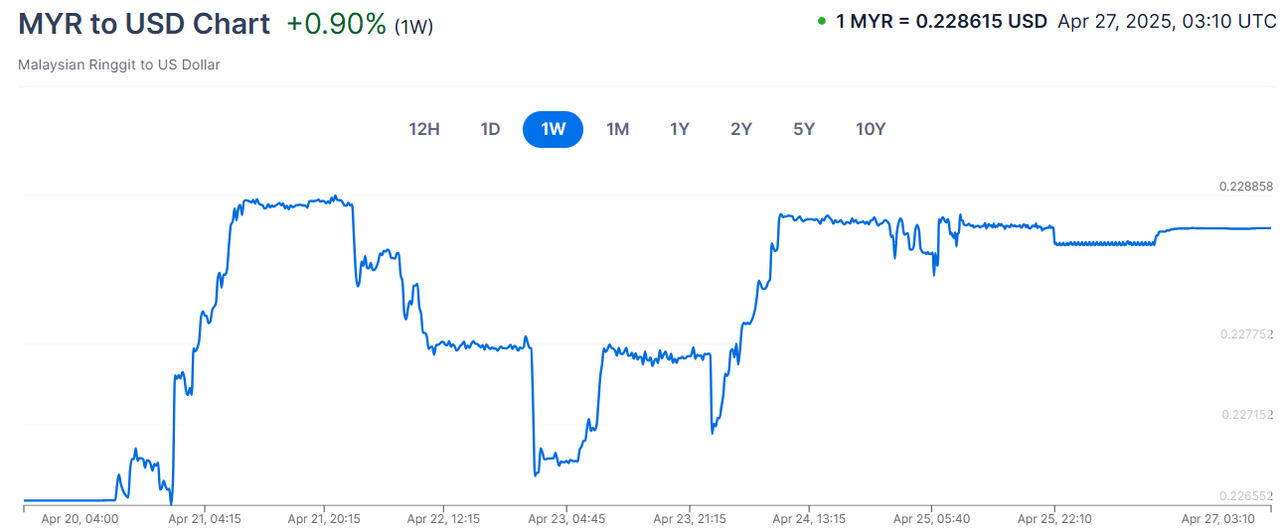 MYRUSD:本周林吉特兑美金呈现明显的上涨态势。马来西亚穆斯林银行首席经济学家 Mohd Afzanizam Abdul Rashid 博士表示,由于大国和其他全球贸易伙伴的关税争端存在不确定性,投资者信心下降,导致美元需求减弱,令吉兑美元汇率走强。未来马来西亚林吉特兑美元汇率可能会继续走强。