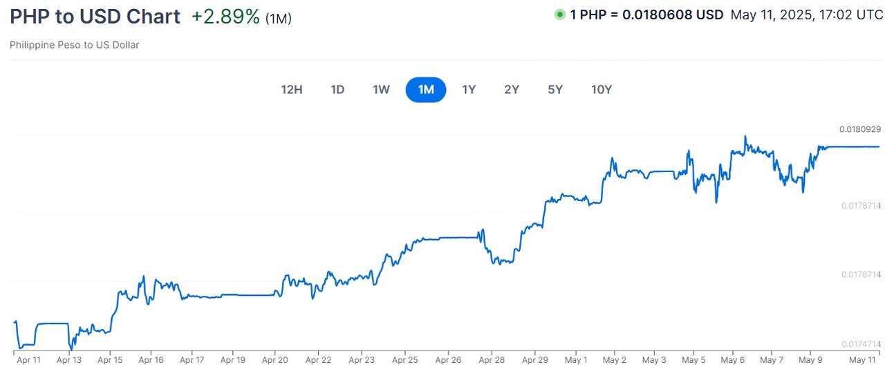 PHPUSD:菲律宾兑美金4月呈现上涨走势。菲律宾作为东南亚重要的出口导向经济体,后疫情时代电子产品和数字服务需求旺盛,出口业得到支撑,加速了本国货币的升值。菲律宾经济增速展现出复苏迹象,吸引了更多外资流入,有效支撑了比索的汇率。