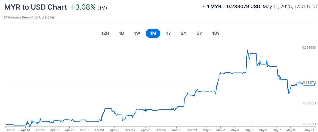 MYRUSD:4 月林吉特兑美元汇率整体呈现强势升值趋势。马来西亚央行维持利率不变,显示出对经济复苏的信心,一定程度上支持了林吉特的稳定,为其升值提供了基础。美国国内经济数据波动,加息预期、通货膨胀以及就业市场的变化,导致美元近期强势回落,为林吉特兑美元升值创造了外部条件。5 月林吉特兑美元走势存在一定不确定性。从技术分析来看,据相关预测,5 月林吉特兑美元汇率可能在 0.2183 - 0.2273 之间波动,平均价格预计为 0.2228。