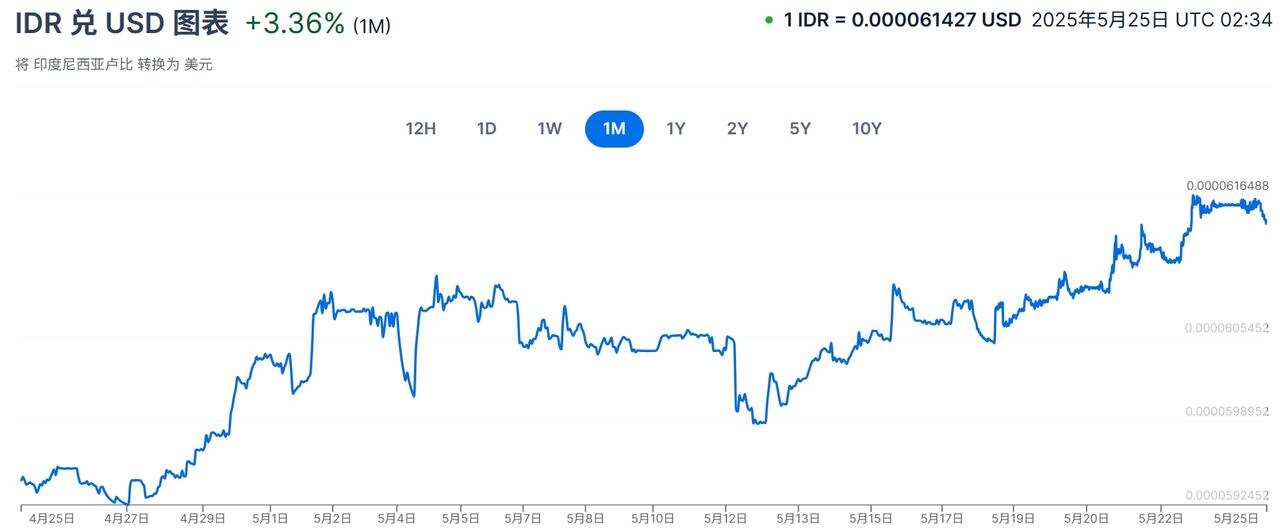 IDRUSD:5月22日,印尼盾兑美元升至3月份以来最高水平。且本周印尼盾兑美金呈现上涨态势。印尼央行继续维持利率不变以支撑印尼盾,原因是担忧印尼盾为亚洲贬值最严重的货币。同时,投资者信心以及对等关税所带来的风险仍是实施宽松货币政策的障碍。