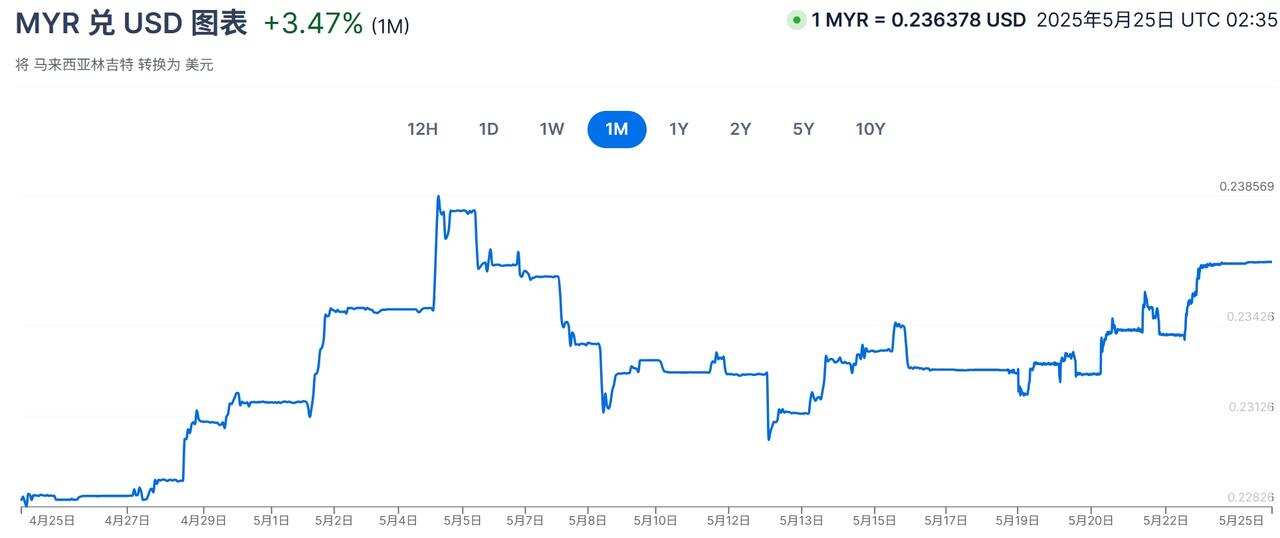 MYRUSD:整体来看,本周林吉特兑美金汇率呈波动上升态势。马来西亚近期公布的经济数据整体表现稳定,且美元在本周整体表现相对不稳定,市场对美元的预期存在一定分歧,没有形成持续走强的趋势,这为林吉特兑美元汇率的上升创造了一定条件。一些机构的分析报告也认为林吉特在短期内有升值的潜力,这种市场预期也推动了汇率的上升。