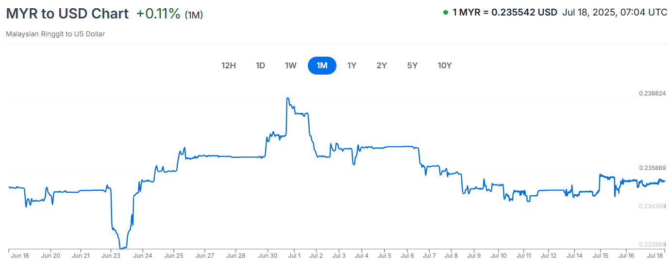 MYRUSD:在全球钢铁供应过剩的背景下,马来西亚为保护当地生产商,对钢铁产品征收反倾销税。在 今年4 月至 5 月美国对等关税暂缓实施期间,马来西亚出口表现亮眼,出口总值同比增长 17.0%。这一增长主要得益于对美国的突击出口,以及与台湾电子供应链关联带来的业务增量。但8月关税谈判前,林吉特大概率维持震荡偏弱格局。