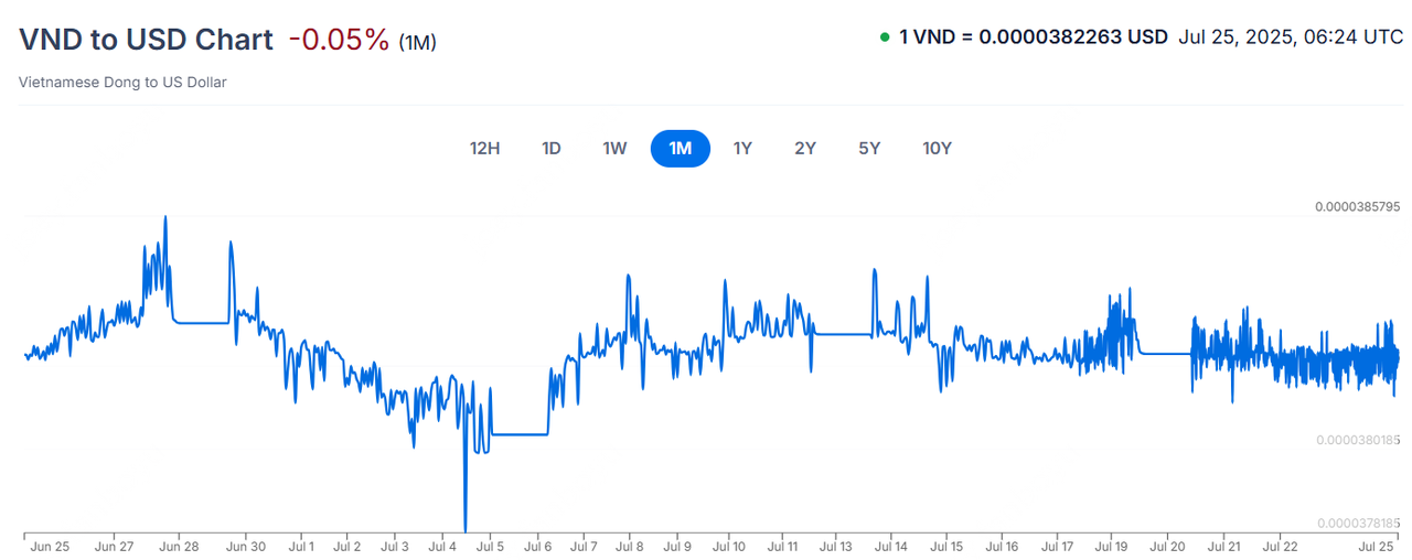 VNDUSD:上周越南盾兑美金呈现区间震荡走势,整体变化幅度不大,但7月25日的汇率创2024年末以来新低,主要受美元影响。从国内经济看,越南6月制造业PMI连续第三个月收缩(48.9),新出口订单创2021年以来最大跌幅,削弱外汇收入。同时6月通胀率升至 3.57%,输入性成本上升加剧贬值压力。越南盾本周大概率维持 26,000-26,300越南盾/美元区间震荡,重点关注美联储政策信号及越南贸易数据。