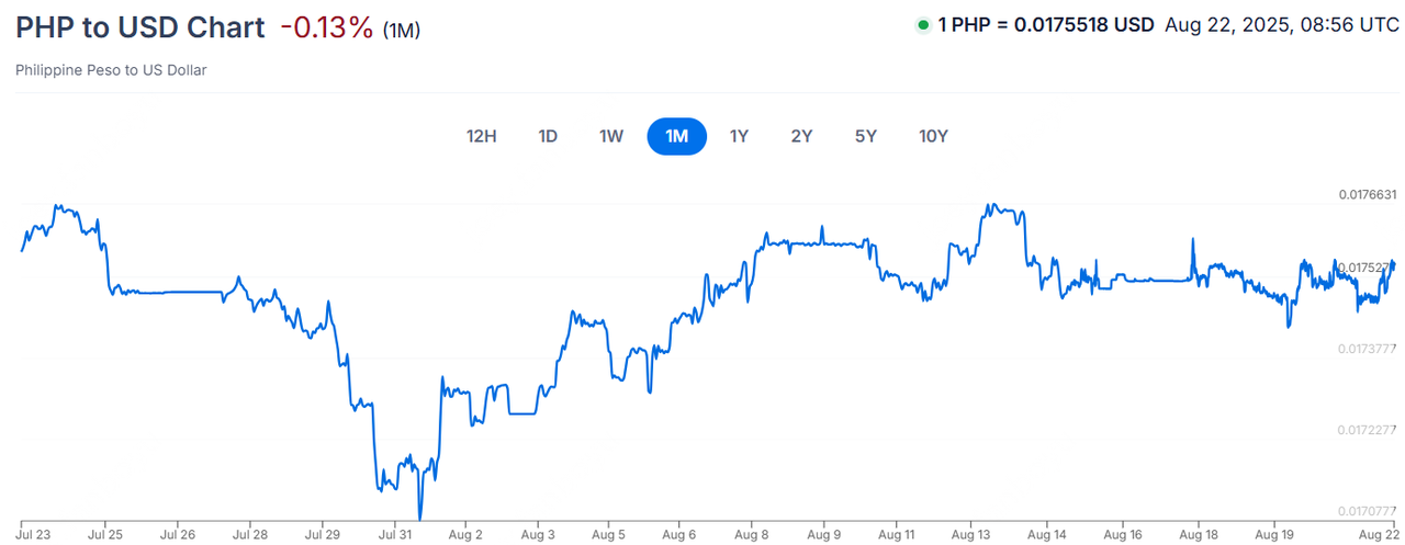 PHPUSD:本周菲律宾比索兑美元汇率整体呈现先波动下跌后上涨的态势。上周五鲍威尔讲话传递的信息让市场继续押注美联储将在9月降息,非美货币走势均获得一定涨幅,若美元继续走弱,比索将迎来走强的机会。