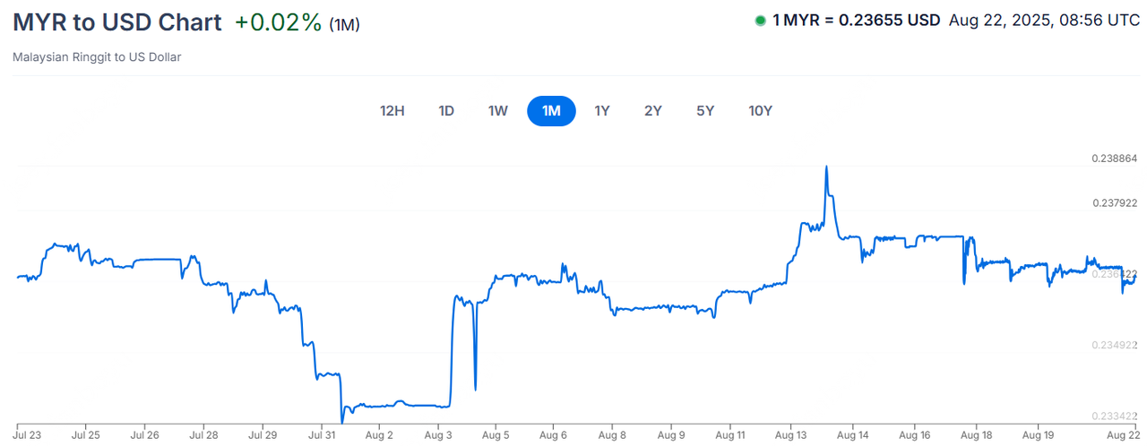 MYRUSD:本周林吉特兑美元汇率整体呈震荡微跌态势。随着市场对美国经济衰退担忧的消退,以及押注美联储下月降息,亚洲货币整体信心提升,林吉特因国内经济增长前景乐观领涨。一定程度上支撑了林吉特在本周的汇率表现 。上周鲍威尔讲话传递的信息让市场继续押注美联储将在9月降息,若马来西亚 8 月 26 日公布的通胀数据高于预期,根据过往经验,林吉特也可能走强。
